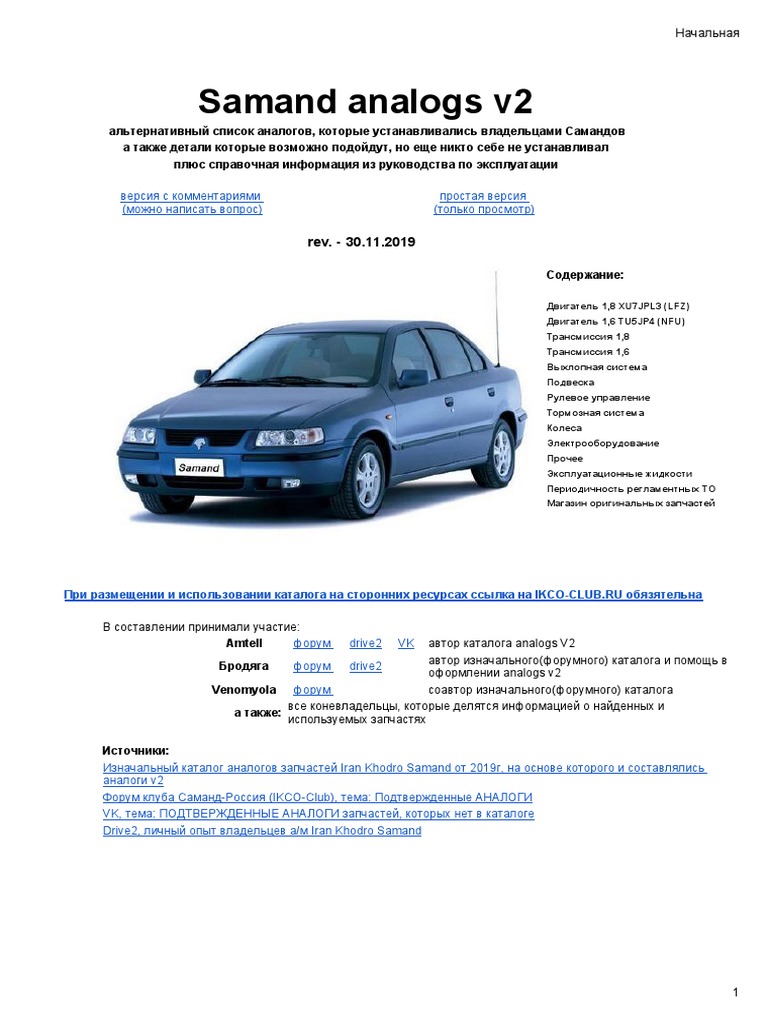 SAMAND IRAN KHODRO Каталог Запчастей
