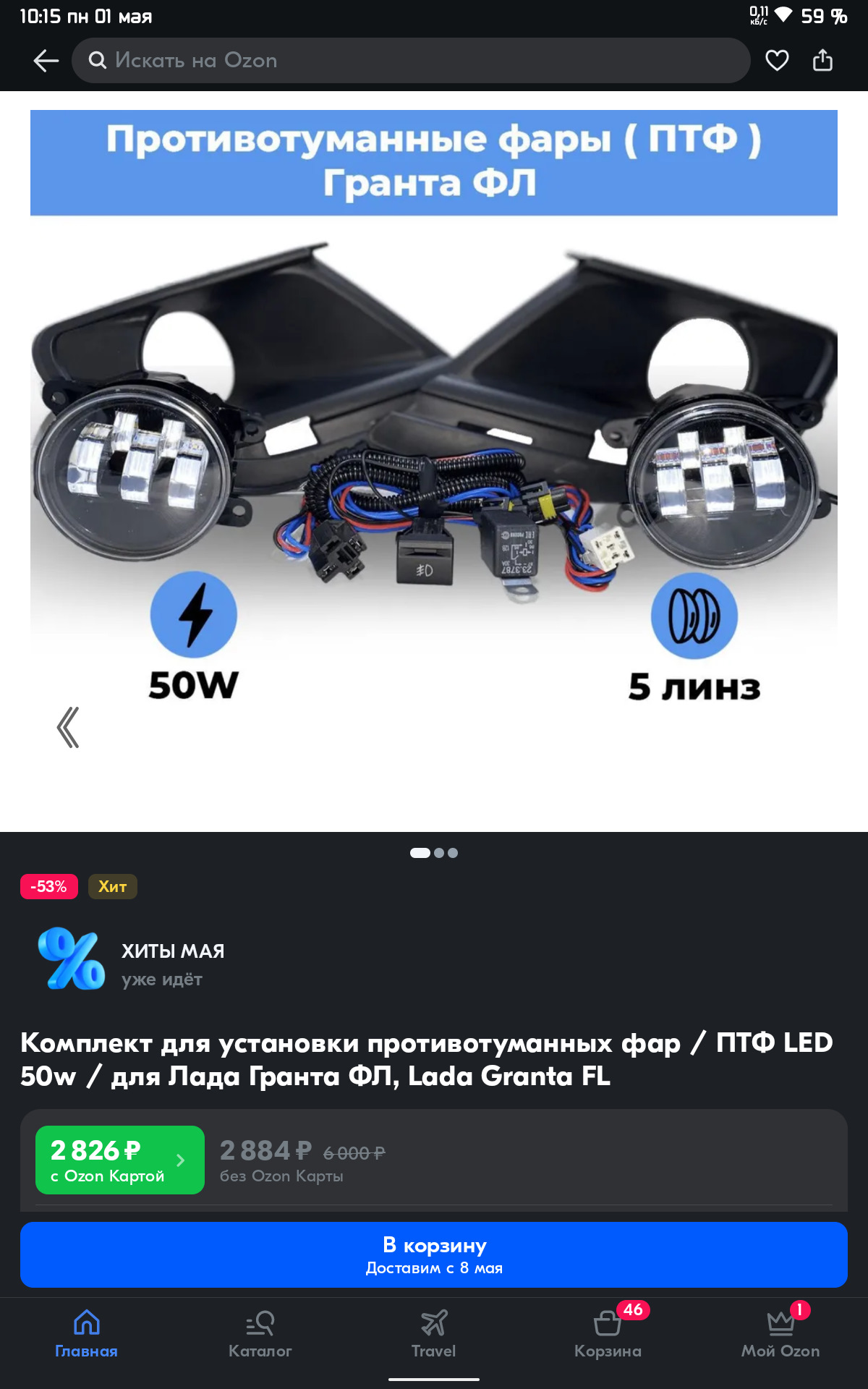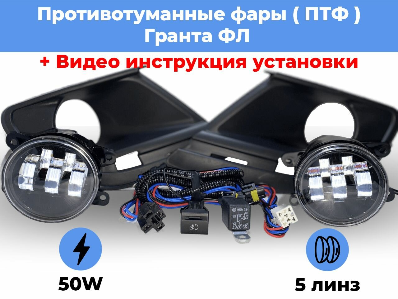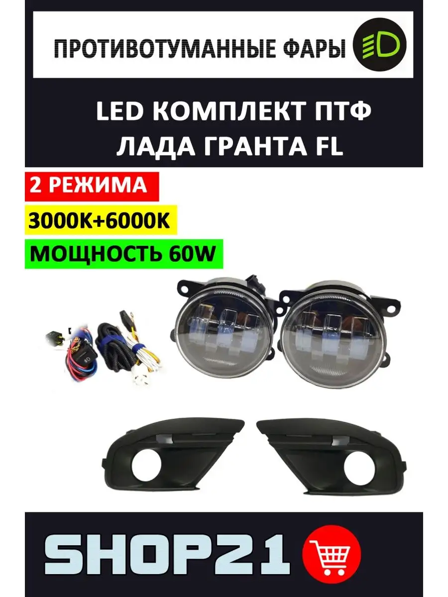 Комплект для Установки Противотуманных Фар Птф LED 30W для Лада Гранта Фл LADA GRANTA FL