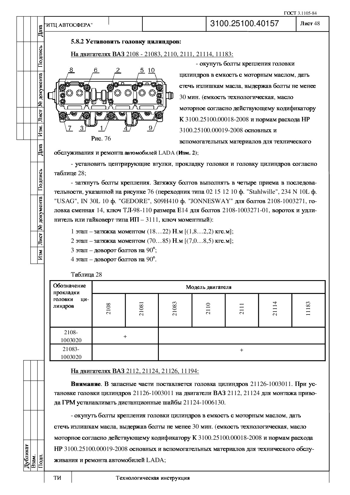 Лада Гранта 8 Клапанная Момент Затяжки Гбц