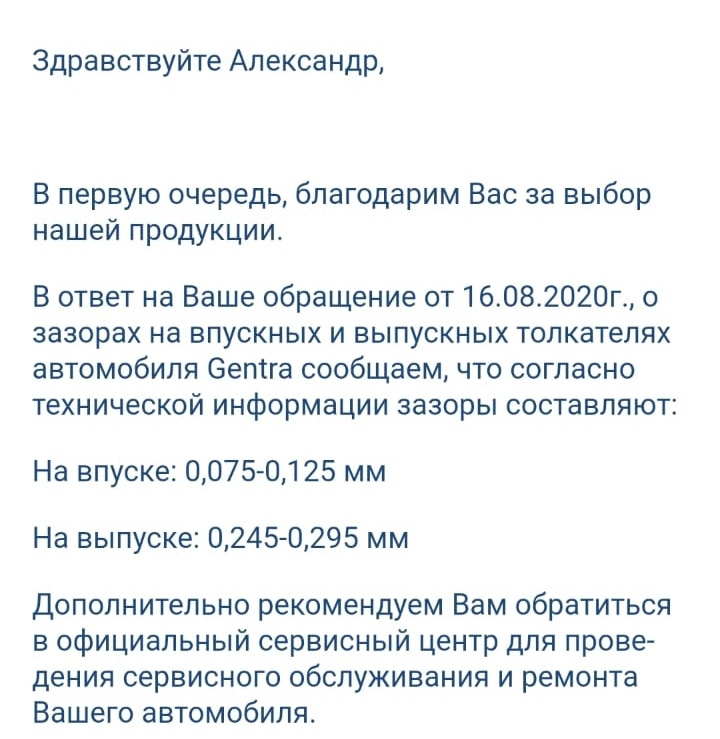 Дэу Джентра Зазоры Клапанов