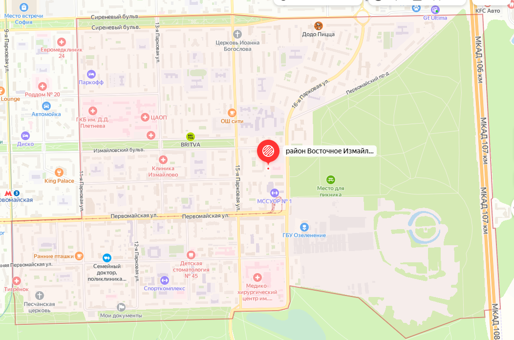 Район Измайлово на Карте