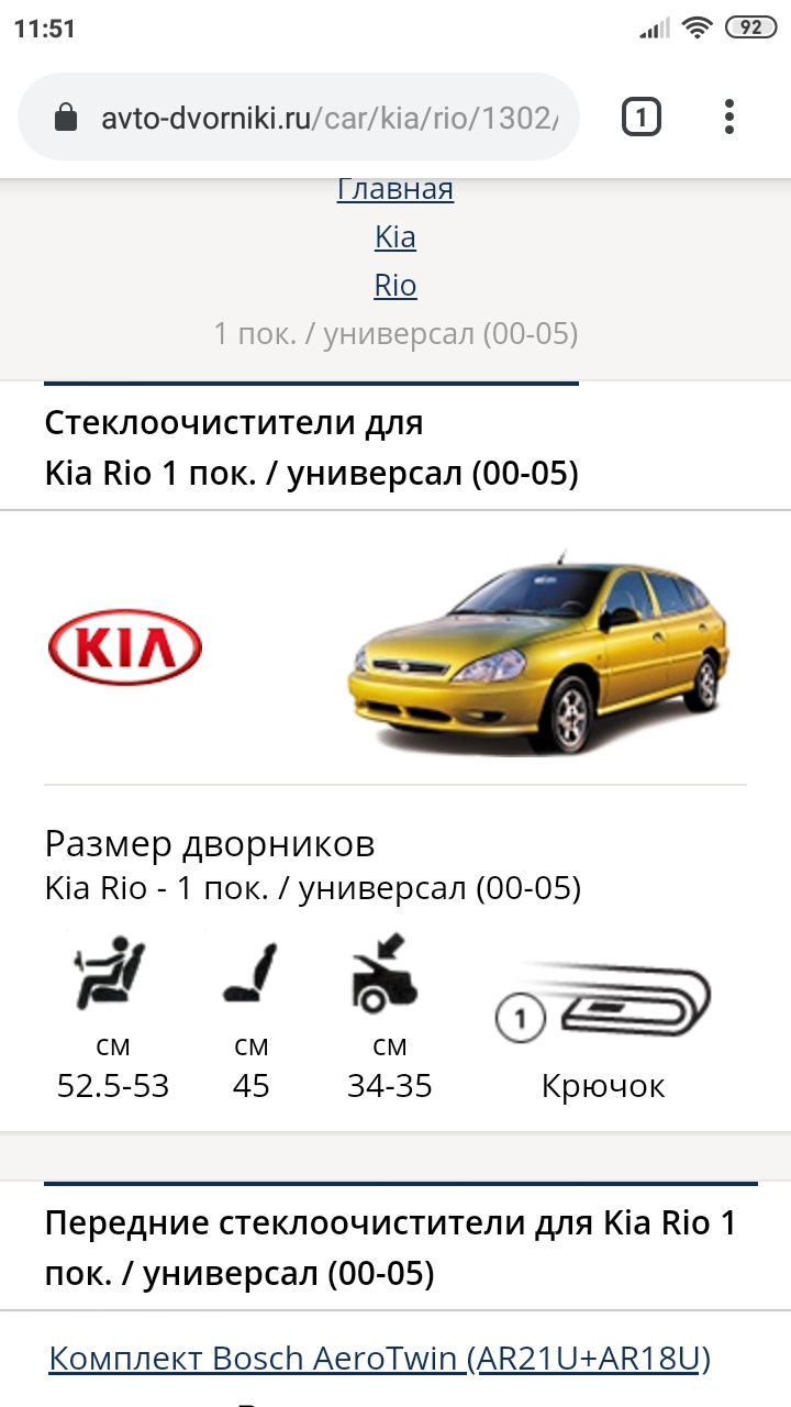 Киа Рио Размер Щеток Стеклоочистителя