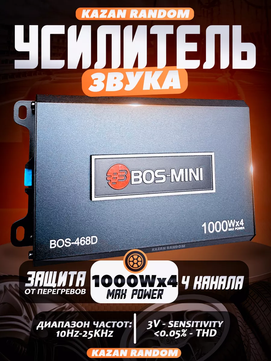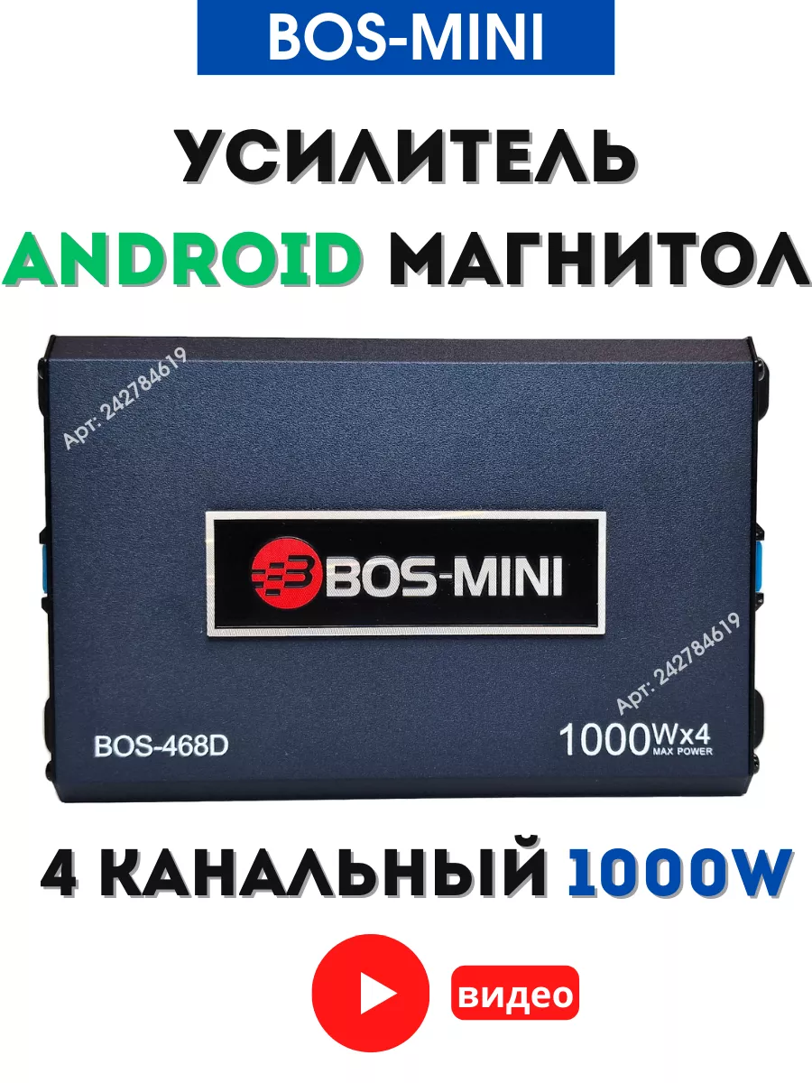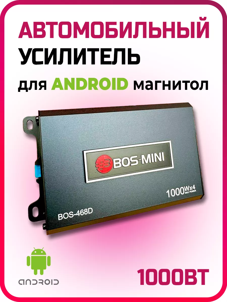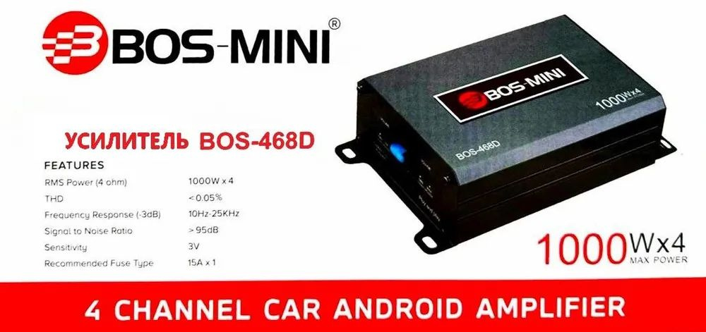 Усилитель Автомобильный для ANDROID Магнитолы BOS MINI 468D Четырехканальный 4Х1000W
