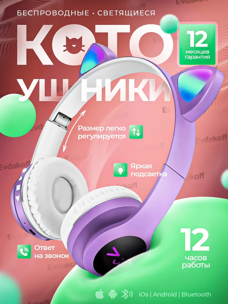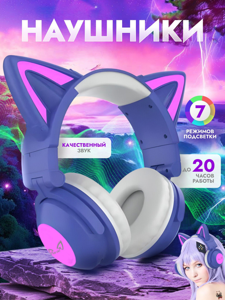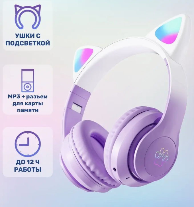 Наушники Ушки Кошки с Подсветкой