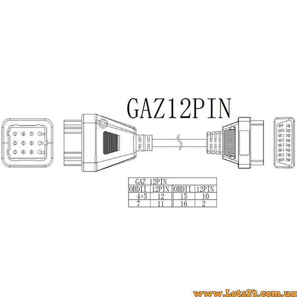 Переходник Газ 12 PIN OBD2 Украина