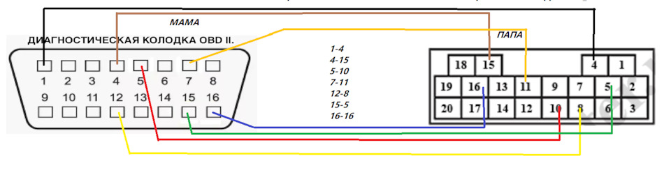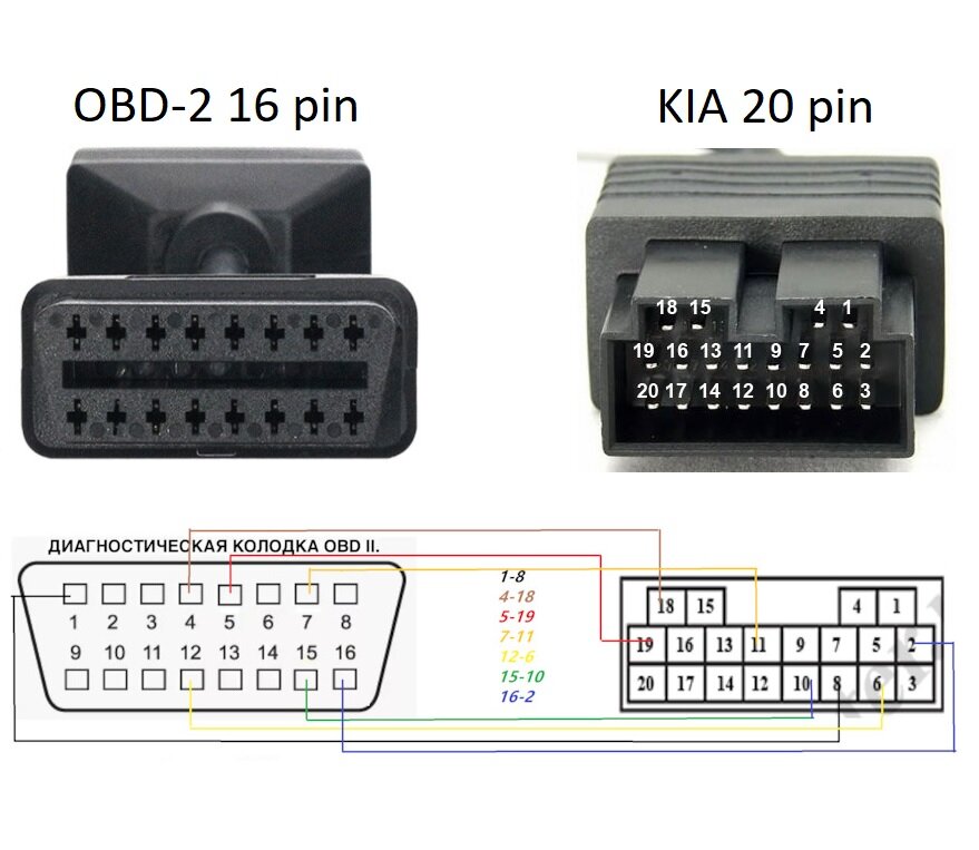 Переходник KIA 20 PIN TO OBD II