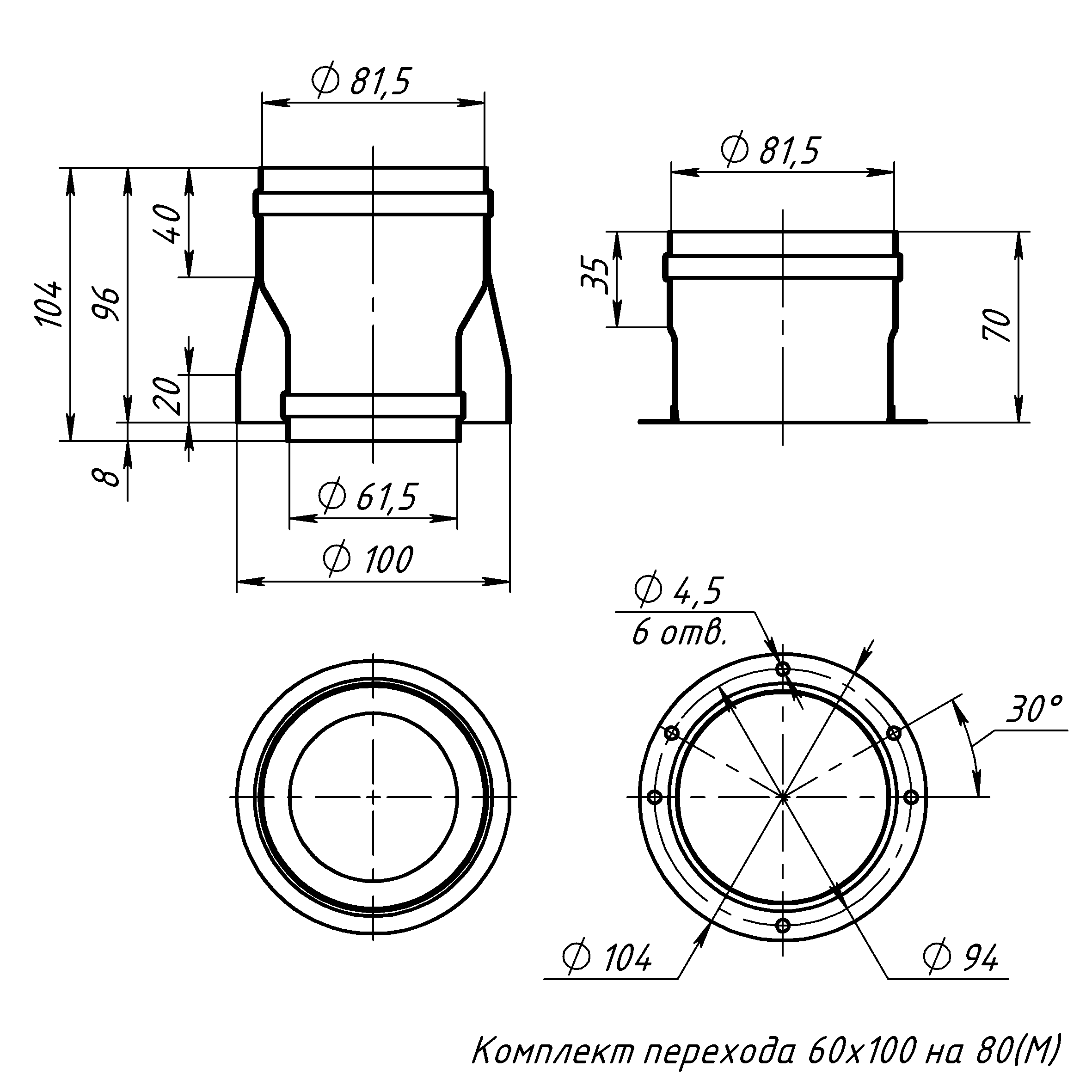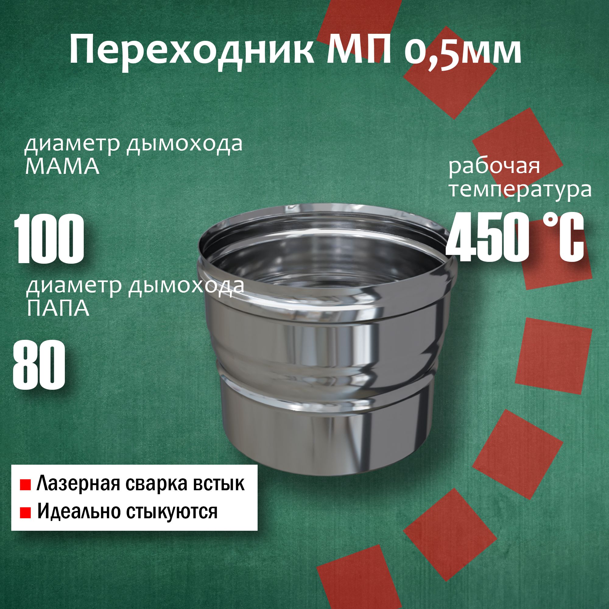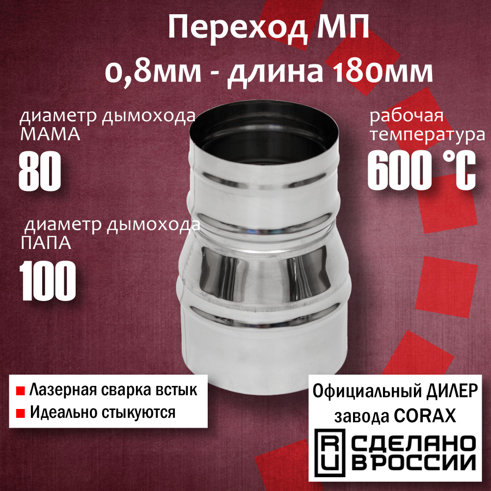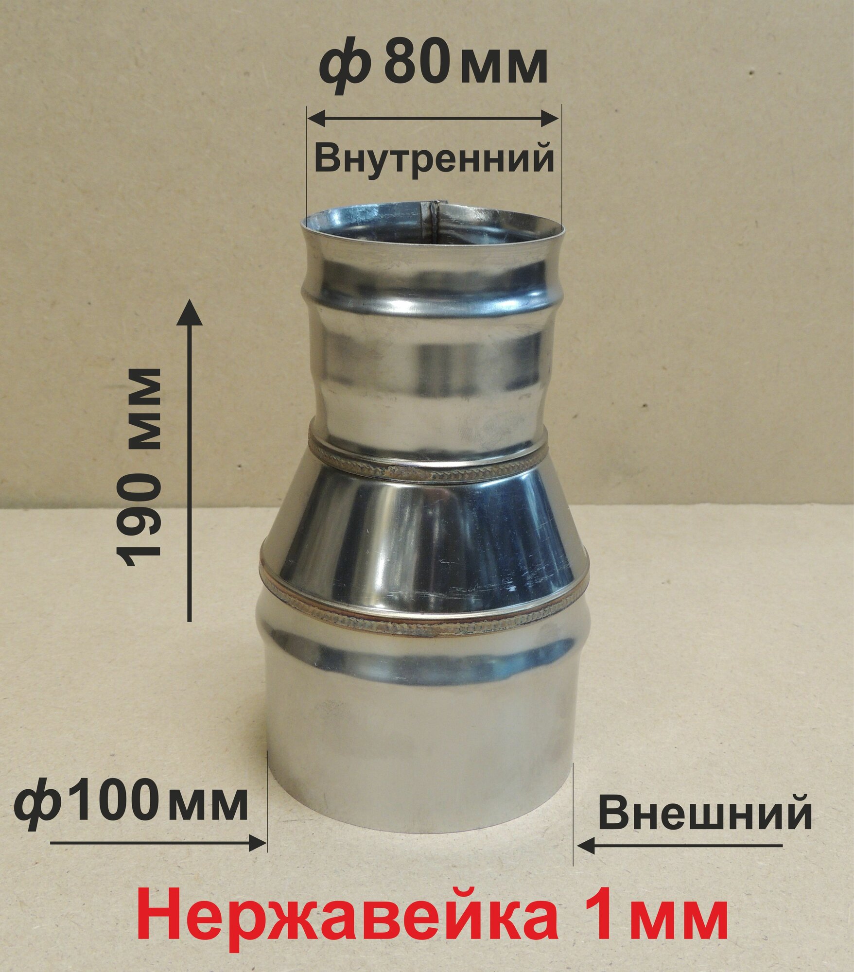 Переходник 80 на 100 для Дымохода