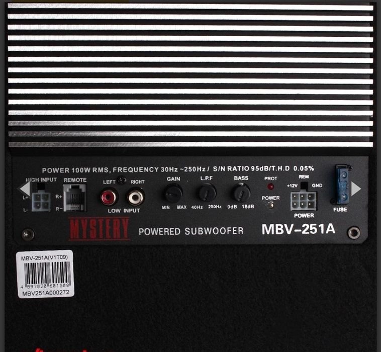 Сабвуфер Мистери MBV 251A Характеристики