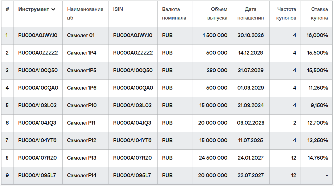 Самолёт 15 Облигации