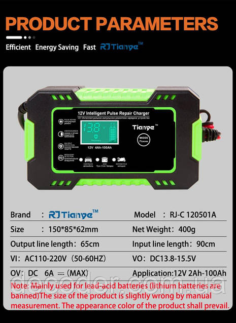 RJ TIANYE Зарядное Устройство для Автомобильного Аккумулятора Инструкция