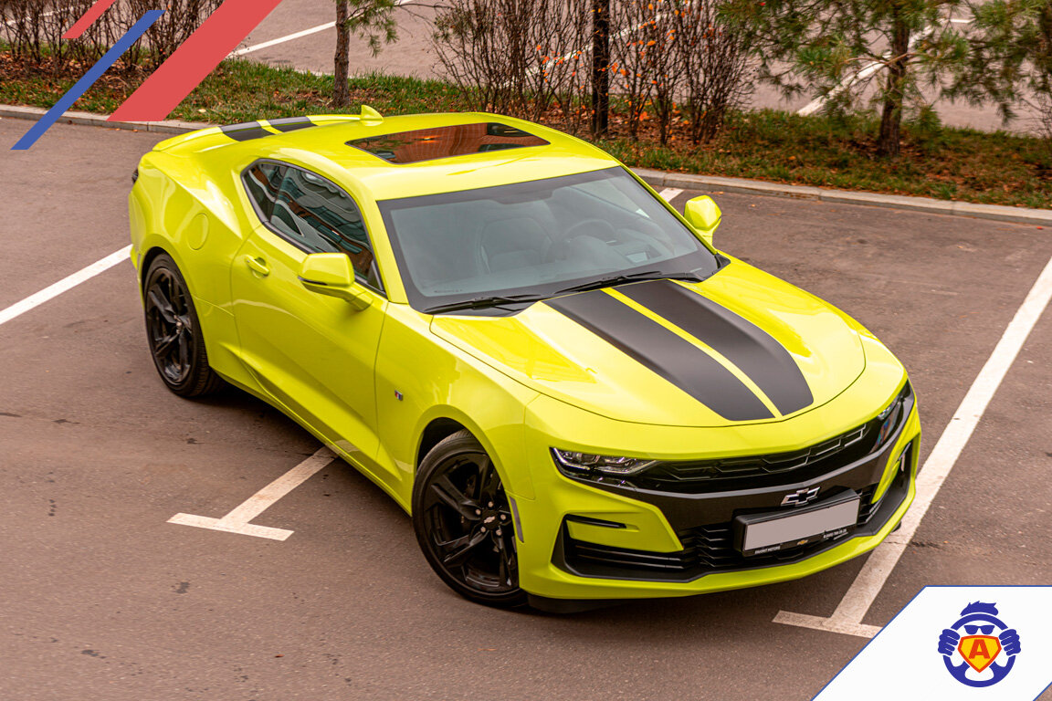 Шевроле Желтая Спортивная с Двумя Полосками