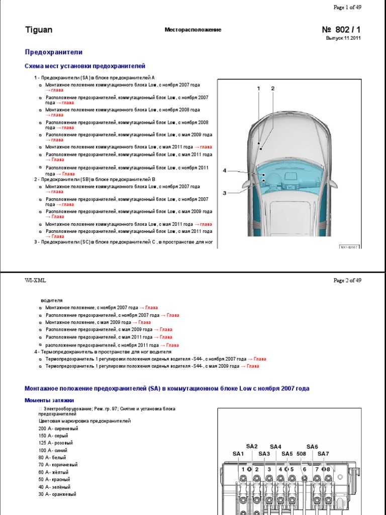 Фольксваген Тигуан Предохранители