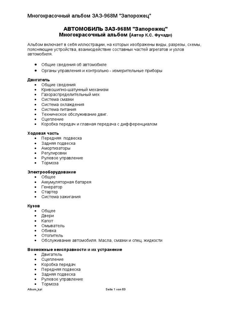 Электросхема Заз 968М Большая