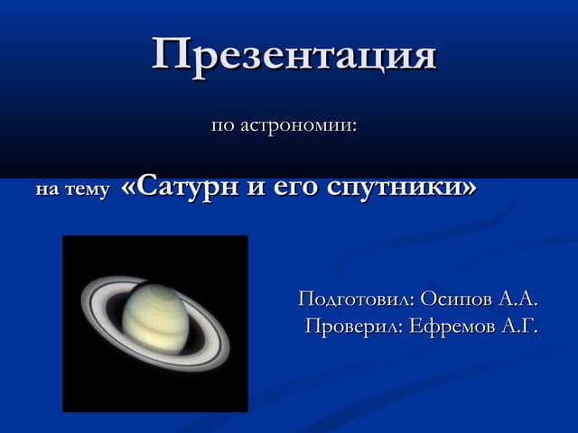 Сатурн и его Спутники