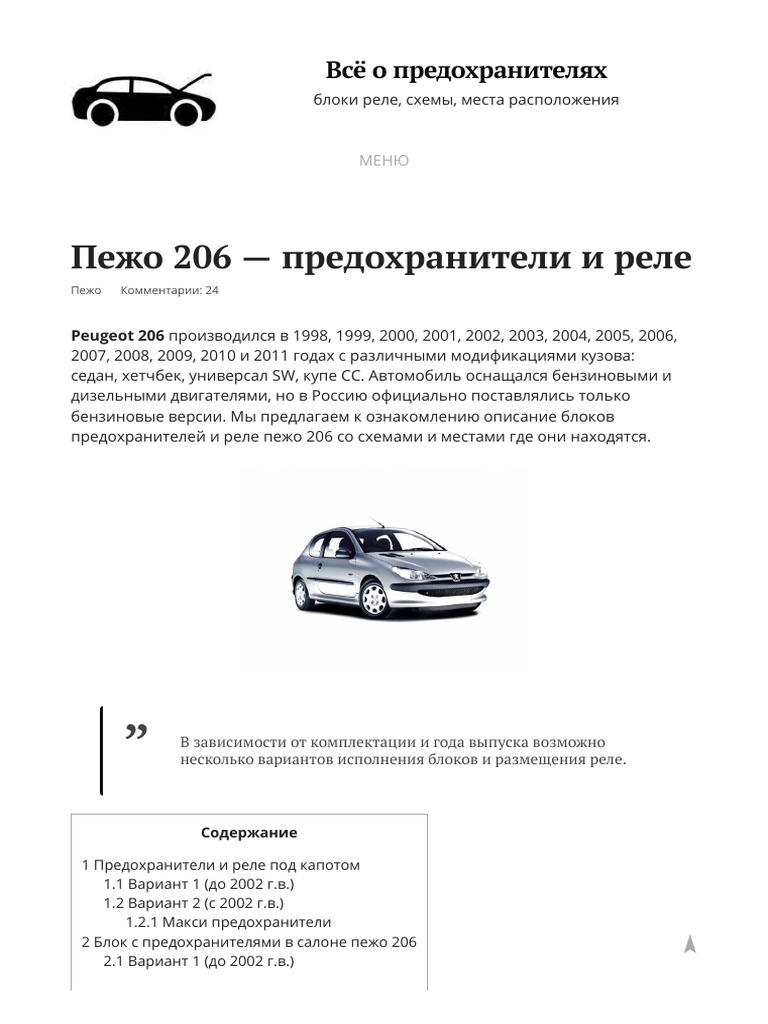 Пежо 206 Распиновка Блока Предохранителей