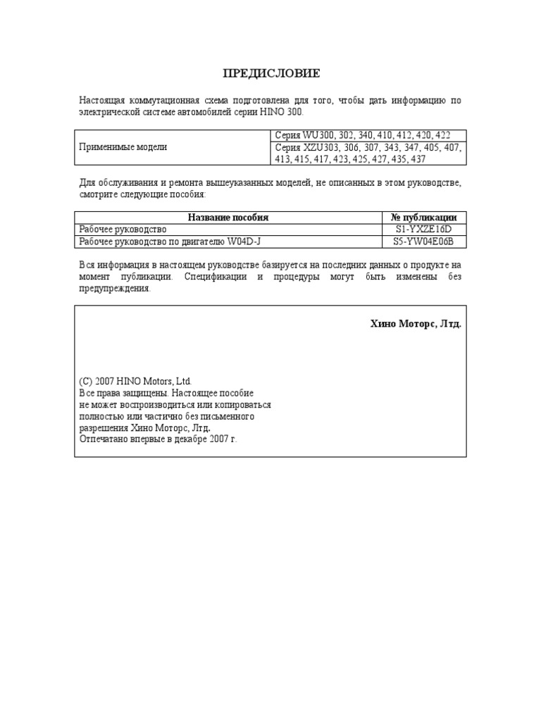 HINO 300 Ñõåìà Ýëåêòðîîáîðóäîâàíèÿ