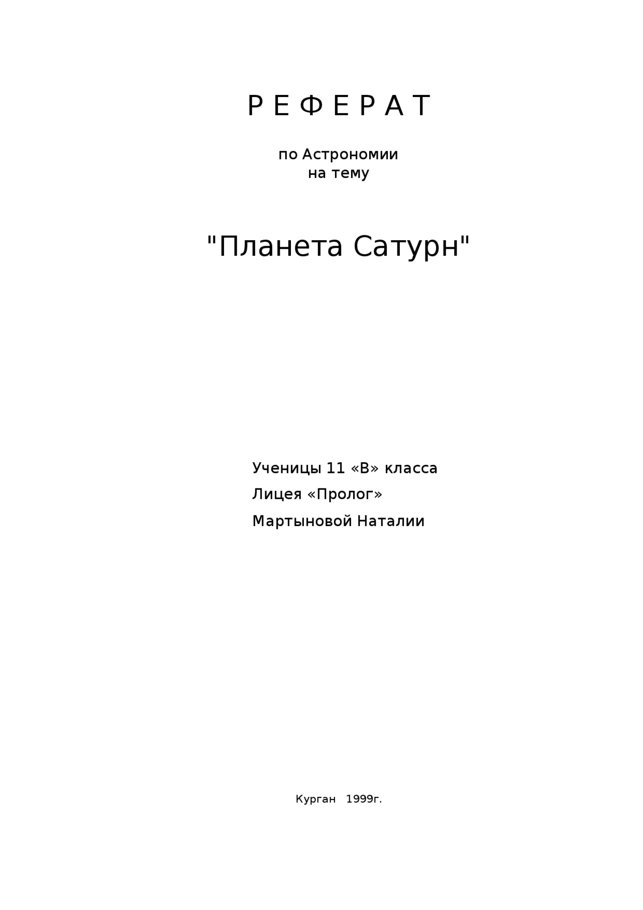 Сатурн Доклад 4 Класс