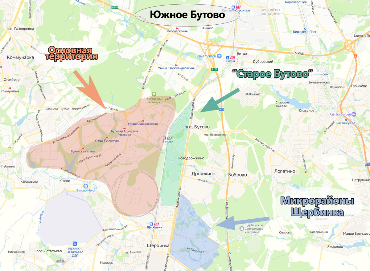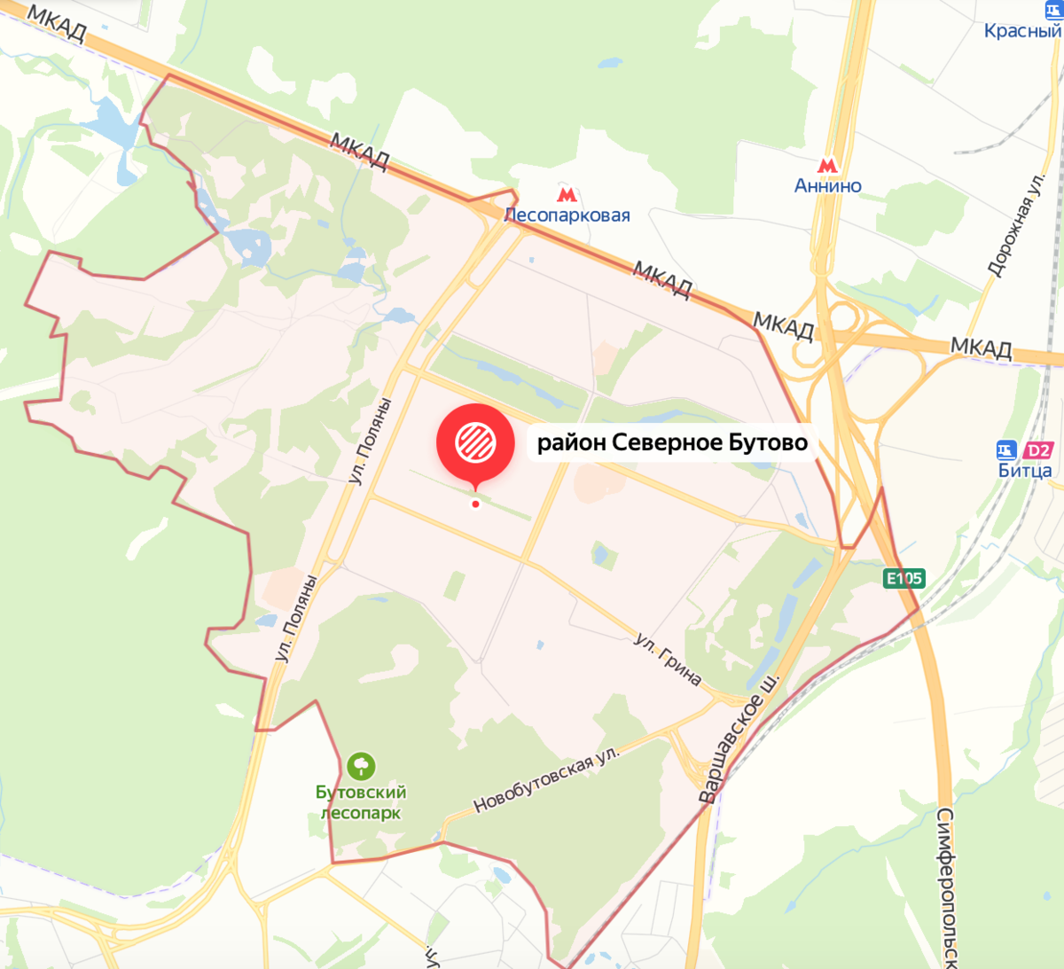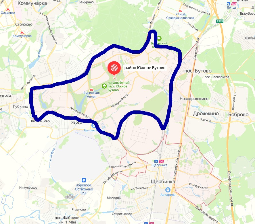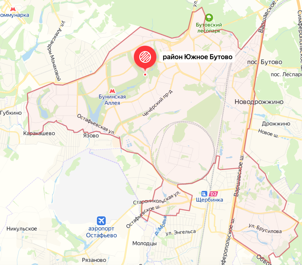 Район Южное Бутово на Карте Москвы