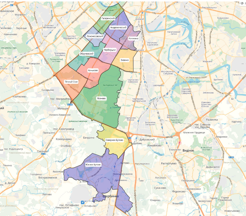 Район Ясенево на Карте Москвы