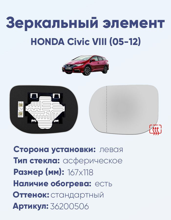 Зеркальный Элемент Хонда Цивик 4Д