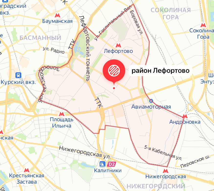 Район Лефортово на Карте Москвы