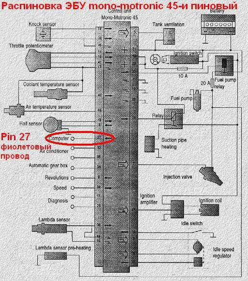 Распиновка Эбу Фольксваген Венто Моновпрыск