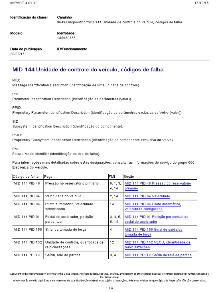 MID 144 PPID75 FMI4 Ошибка Вольво