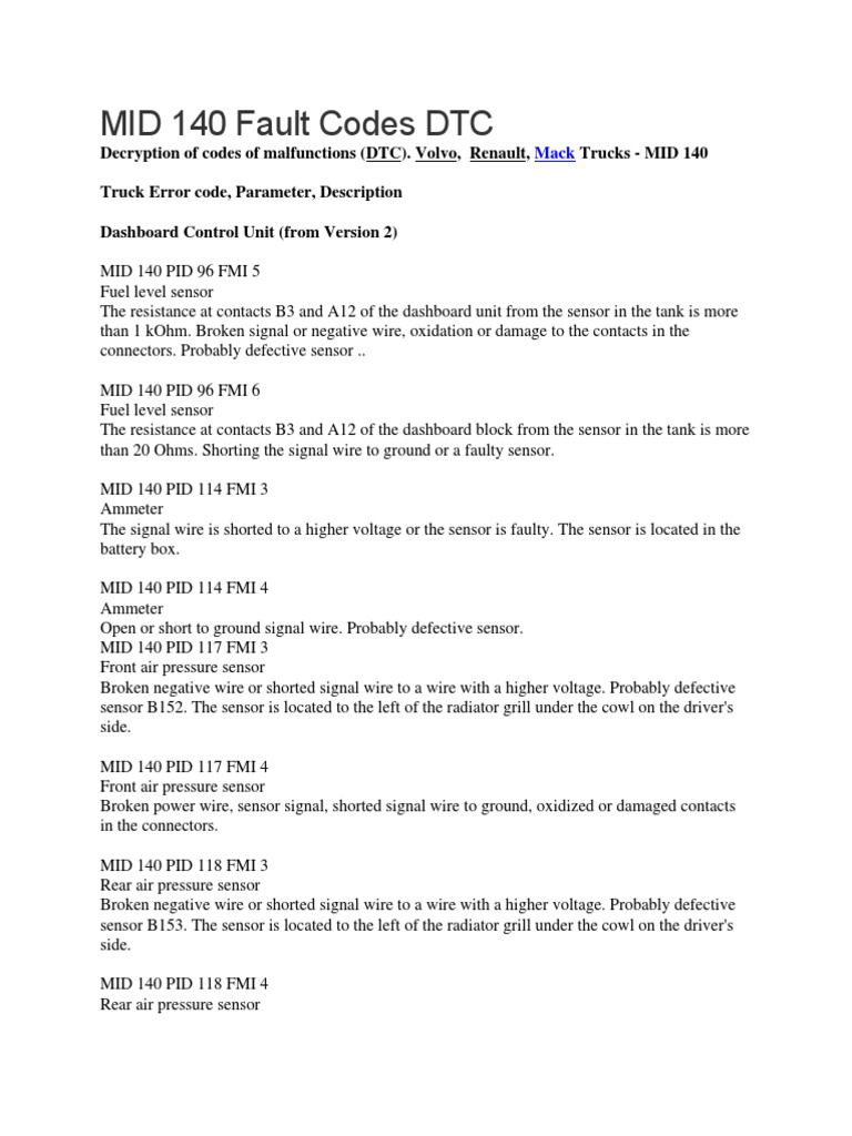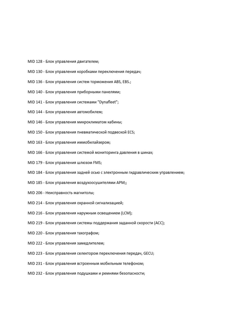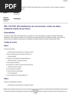 Вольво Ошибка MID 130 PSID 204 FMI 8